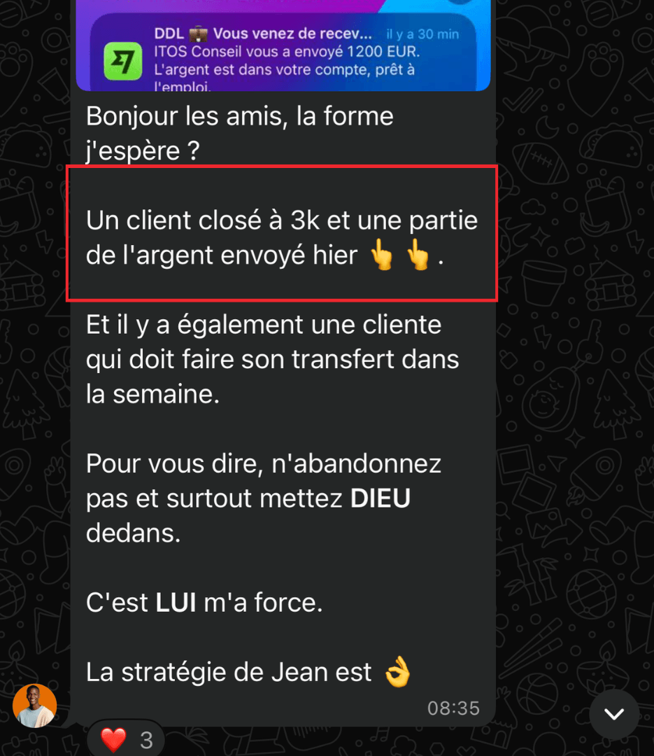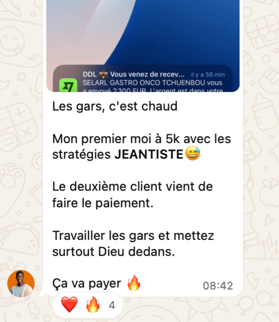 Oui, il y'a un suivi dans la communauté privée sur Telegram avec les autres participants. Tu peux poser tes questions à tout moment et être sûr de recevoir des réponses (écrits, audios ou en vidéos) de la part de Jean lui-même.