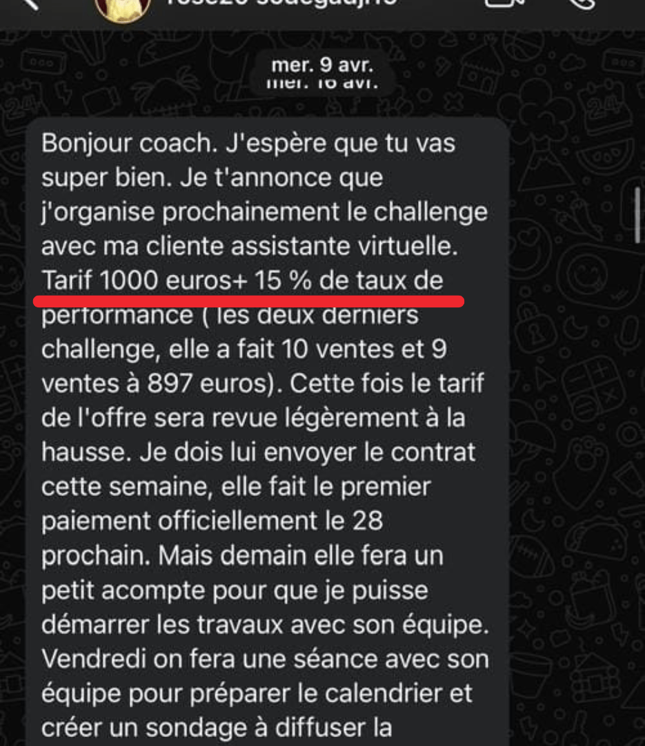 Les résultats varient d'une personne à une autre et sont proportionnels à votre investissement personnel et niveau de passage à l'action. Mais si vous vous investissez à fond et passez massivement à l'action, vous aurez terminé la formation en 14 jours et dans les 30 prochains jours vous pourrez avoir votre premier client.
