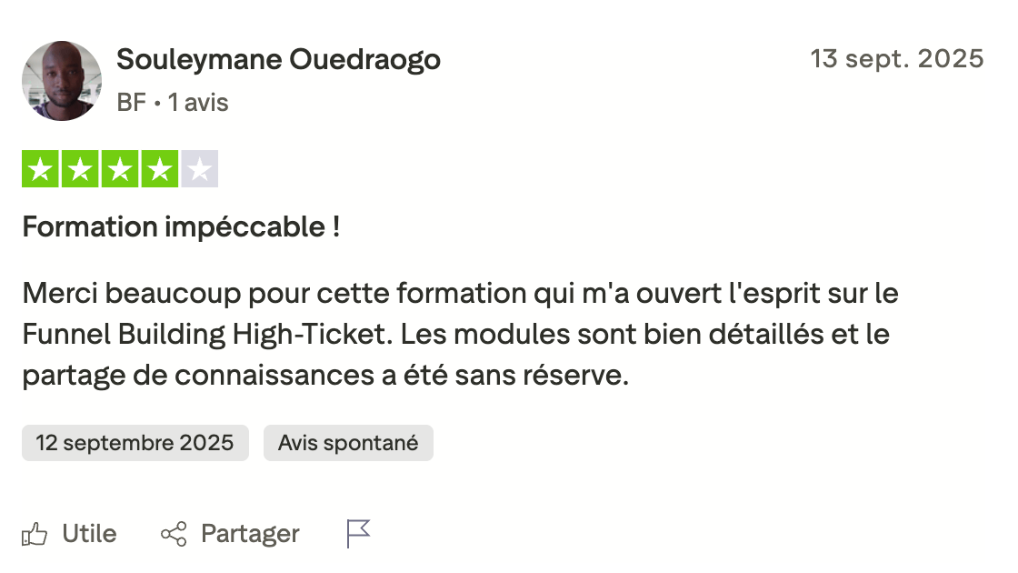 Elle est faite pour vous même si vous êtes déjà funnel builder mais vous manquez de clients ou que vous chercher a trouver votre premier client.