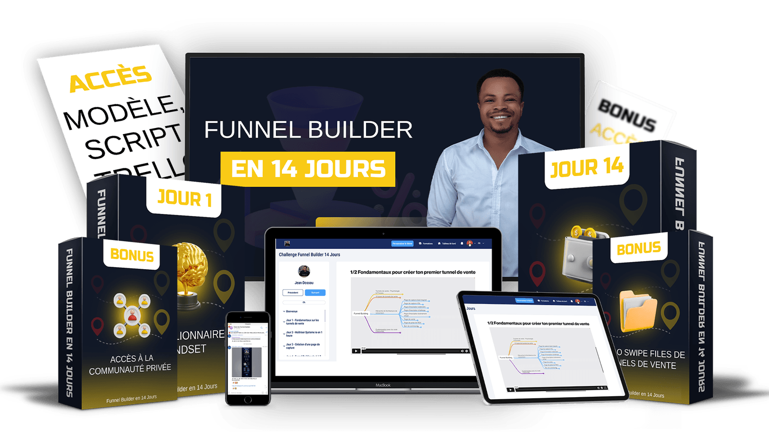 Hey! Bienvenue ici. Si on ne se connaît pas encore, je suis Jean Dossou. Je suis Funnel Builder depuis 5 ans maintenant.
